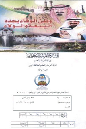 صورة خادم الحرمين وسمو ولي العهد وسمو النائب الثاني تتصدَّر ورقة امتحانات بالرس